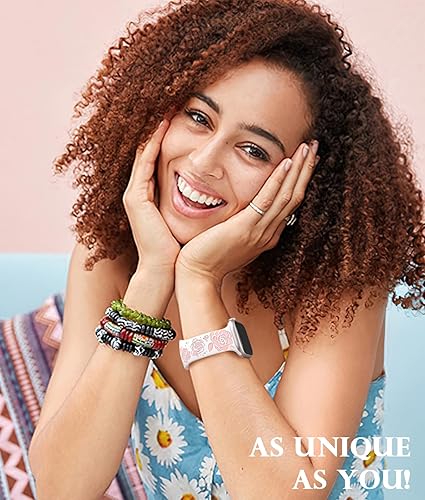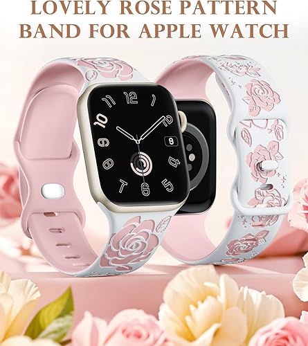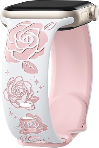 Floral Engraved Bands Compatible with Apple Watch Band 41mm 40mm 38mm 44mm 45mm 49mm 42mm 46mm Women, Soft Silicone Cute Flower Dual-color Bands for iWatch Series 10 9 8 7 6 5 4 3 2 1 SE Ultra