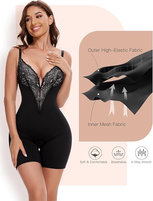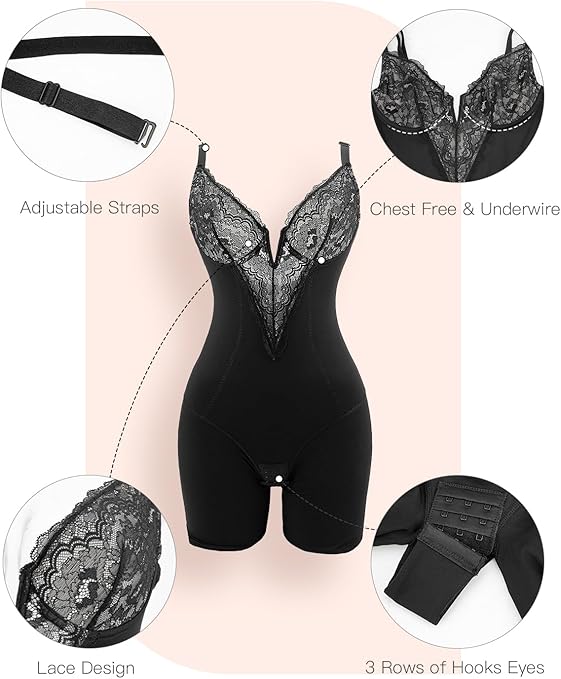 - Sexy Lace Floral Design: This lace shapewear bodysuit is experience a fashion of style and support, designed to elevate your silhouette and provide a flawless, figure-enhancing fit. The deep v design on the chest that flatters your collarbone and bust and shapes a flattering figure. Become a more beautiful and confident women