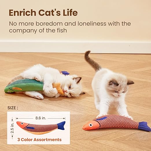 • Cozy Companion: Our catnip fish kicker toys are all made of soft plush material and baby-level cotton, soft and comfortable enough for your feline friends to snuggle and chew.