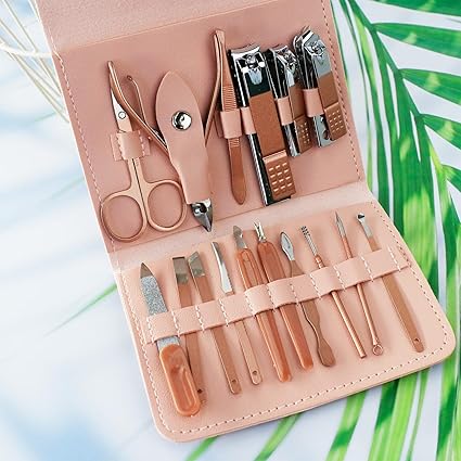 16 Pcs Stainless Steel Nail Clipper Pedicure Kit Toenail Removal Kit Nail Care Toolsc Manicure Kit for Women Men Ingrown Folding Bag (Pink)