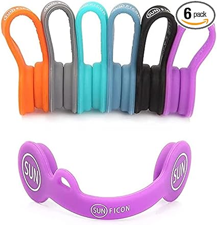 SUNFICON 6 Pack Magnetic Cord Organizers Cable Clips Cable Straps Silicone Twist Ties Colorful Headphone Cord Keeper Holder Manager Bookmark Whiteboard Fridge Magnet Keychain Gift Home,Office,School