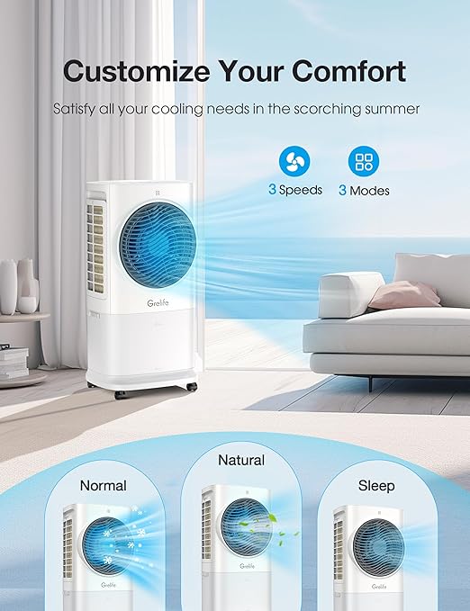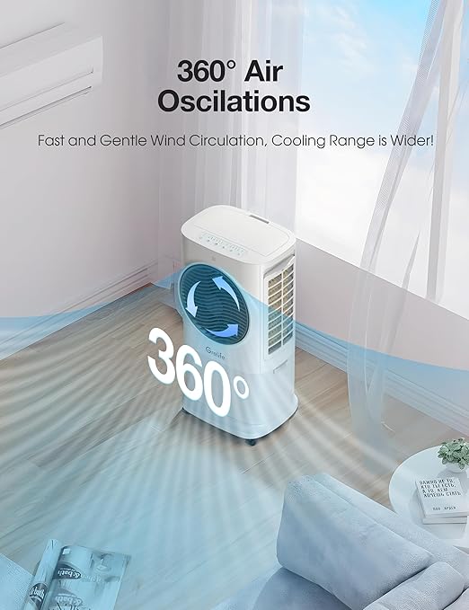 - 【360° Whole-Room Cooling】Portable air conditioner triple-layer cooling system with 3D honeycomb filters rapidly circulates air across 400 sq.ft spaces. 30ft/s turbo wind and wide oscillation reach every corner – ideal for living rooms, offices, or open areas.