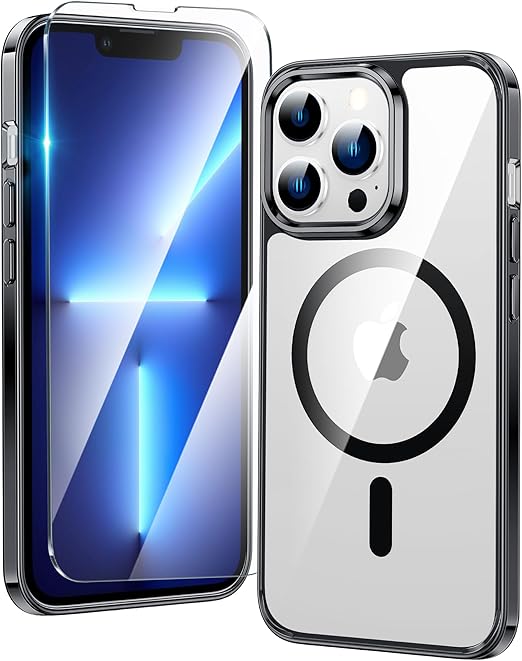 FNTCASE for iPhone 13 Pro Case: Magnetic Anti-Yellowing Slim Clear Phone Case | Military Grade Protective & Shockproof Drop Protection Thin Transparent Cover(Clear-Black)