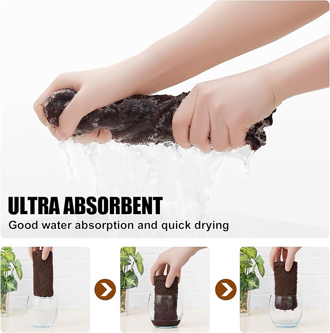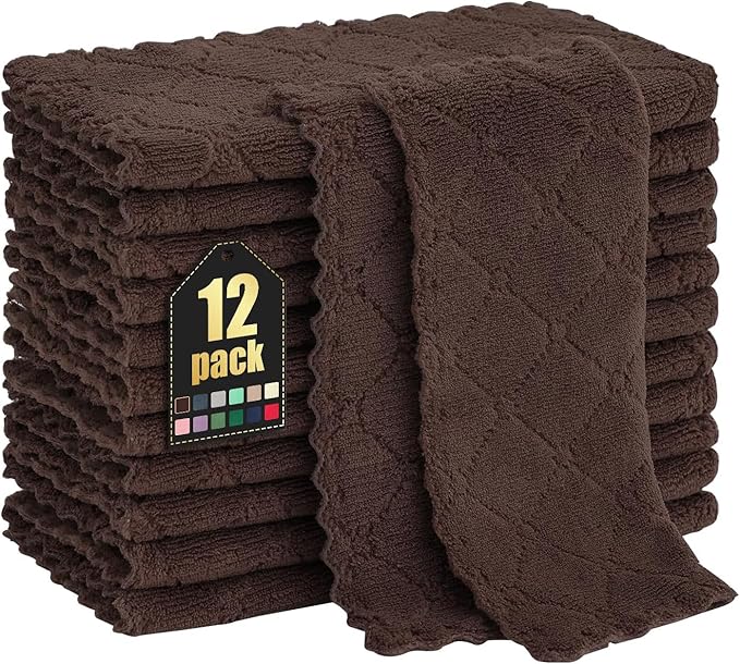 Homaxy 12 Pack Kitchen Dish Cloths (10 x 10 Inches, Brown), Super Soft and Absorbent Coral Velvet Dish Towels, Nonstick Oil Fast Drying Microfiber Cleaning Cloth, No Lint Household Dishcloths