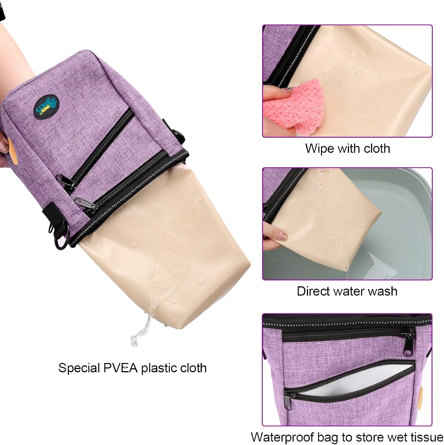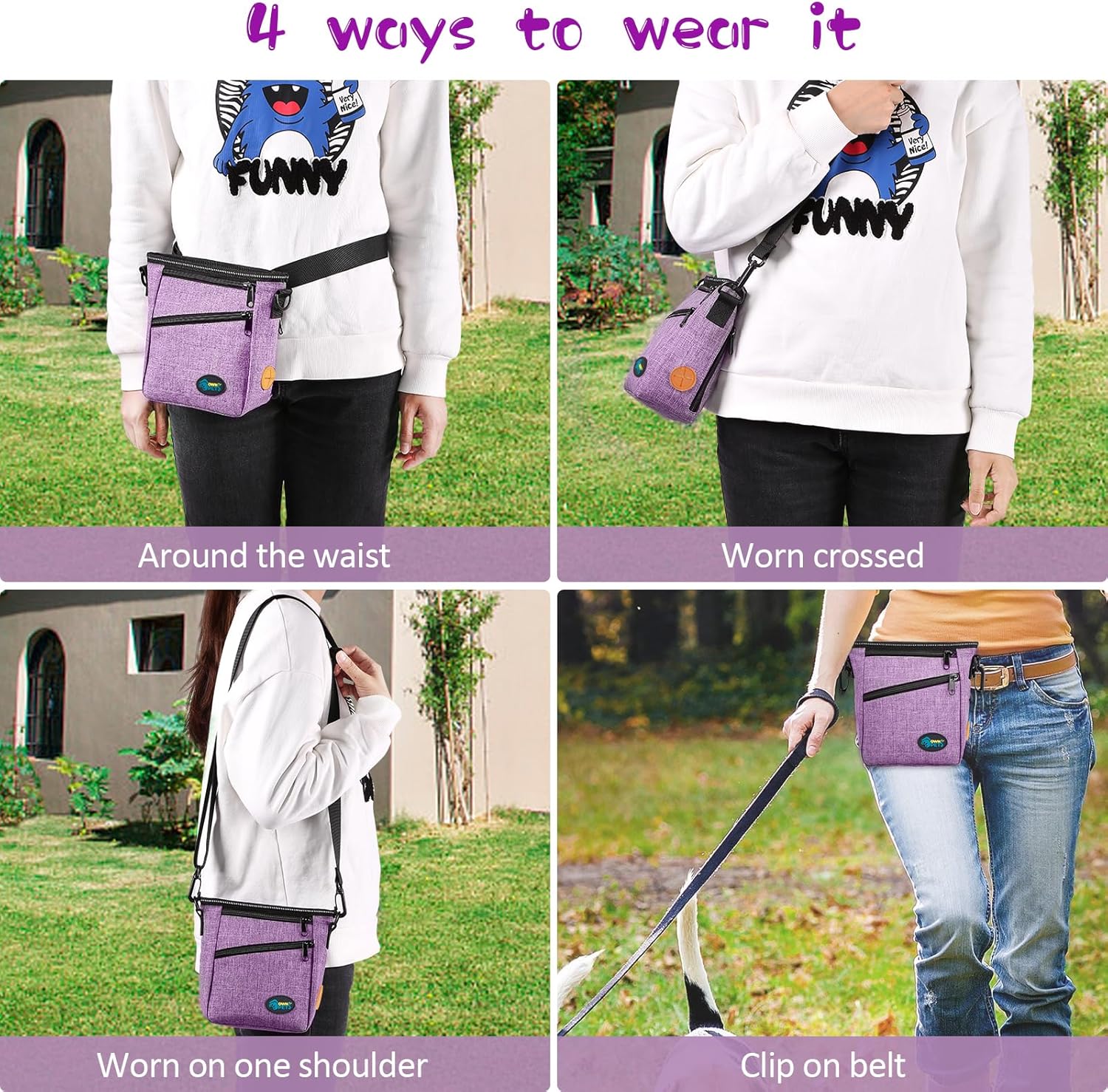 Ownpets Dog Training Pouch, Pet Treat Training Pouch with Collapsible Bowl, Shoulder Strap & Waist Strap, 4 Ways to Wear, Practical Training Bag for Dog Training, Daily Walks – Purple