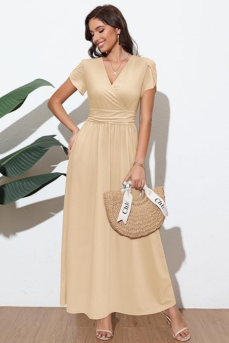 - Fashion designs: Wrap v neck and empire waist makes you more elegant and attractive. The long dresses for women 2025 could easily embellish your figure, hides your belly and makes your legs look longer