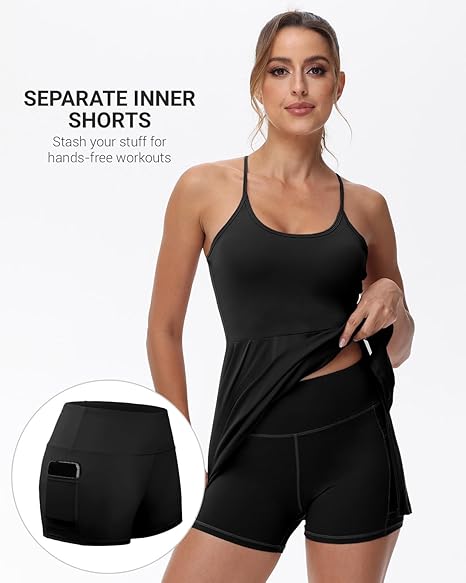 - 【SEPARATE SHORTS】Women’s sports dress includes dress and inner separate shorts with two side pockets, perfect for storing tennis balls, iPhones and other small items. Inner shorts provide comfort and coverage so you can feel confident about your workout.