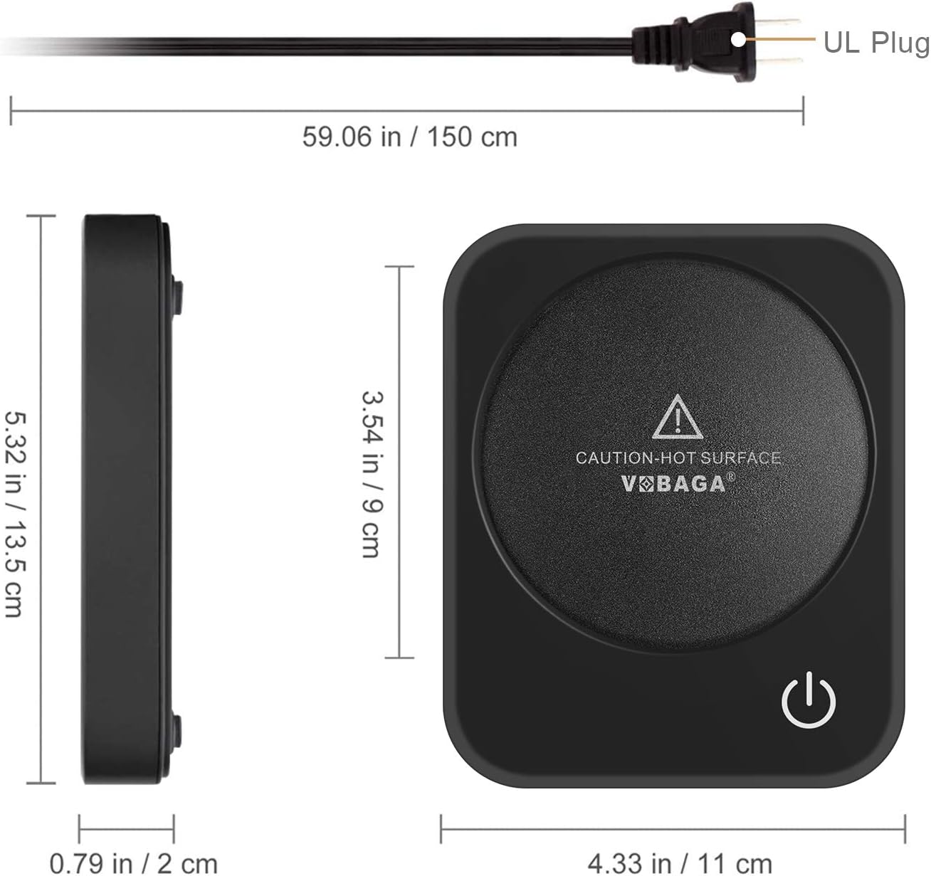 • Adjustable Three-Temperature Setting: VOBAGA coffee warmer will keep your coffee at a perfect drinking temperature. You can control the temperature by tapping the button, keeping your coffee or milk up to 104℉-131℉-149℉ (40℃-55℃-65℃). Changing temperature is just a tap on of your finger.