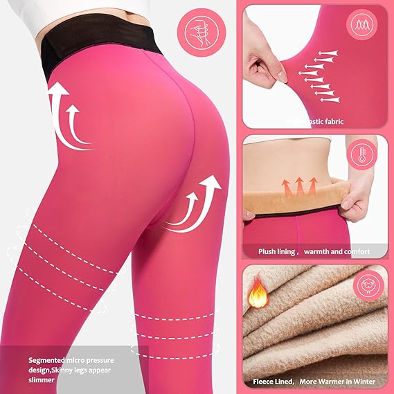 Fleece Lined Tights Women, Warm Pantyhose leggings Women,Fake Translucent Thermal Skin Colored Tights for Winter