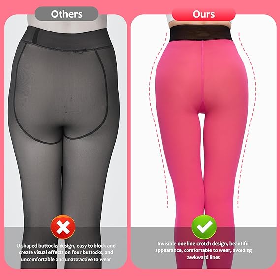【Invisible crotch design,Rejecting awkward threads】:These fleece lined tights for Women Adopting an invisible one line crotch design,At present,the bottom pants on the market are all designed with U-shaped buttocks, which are easy to block and cause visual effects on four buttocks. Compared to this type of product, our bottom pants have a beautiful appearance and Avoiding