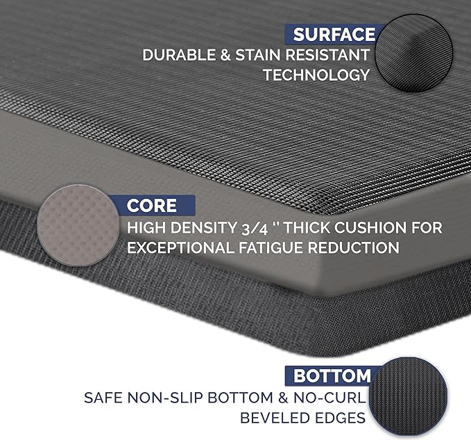 - Anti Fatigue Mat: ComfiLife kitchen mats for floor enhance comfort while standing. It is professionally engineered and can be used as padded kitchen mat or for your standup desk that will not lose support over time