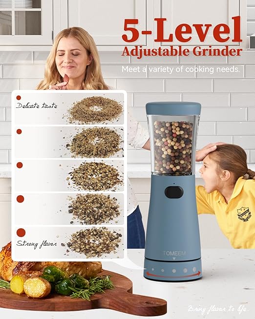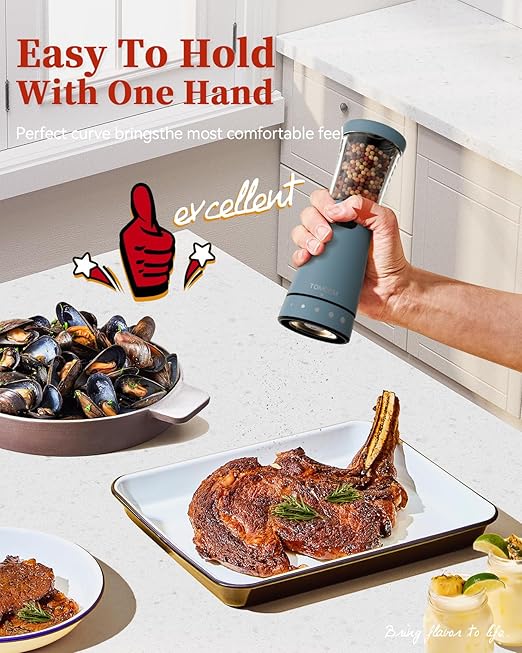 - Extra large 4.5 oz capacity: Say goodbye to constant refills! Our electric pepper grinder has a generous 4.5 oz capacity and a wide 1.8″ opening, making spice refills effortless and less messy