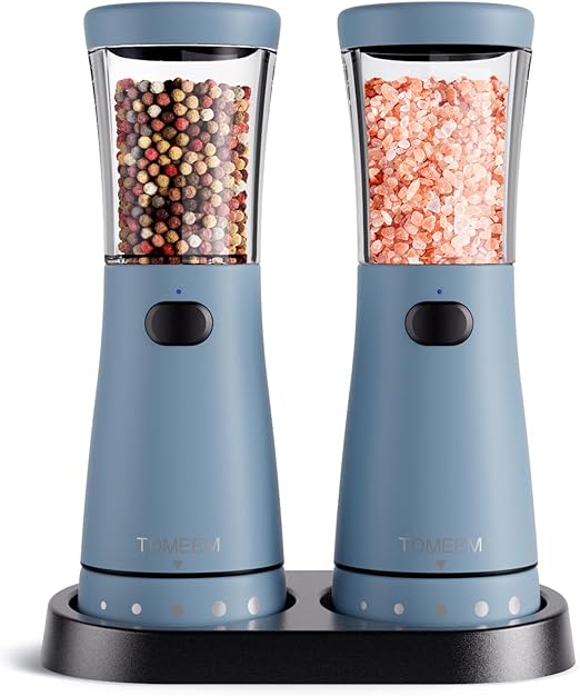 Electric Salt and Pepper Grinder Set with Storage Base, Stainless Steel Rechargeable Salt and Pepper Grinder Set with 4.5 oz Large Capacity, 1.8″ Wide Mouth, Adjustable Coarseness, Ideal for Kitchen