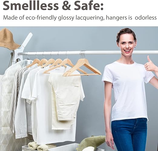 - Safe & Smellless Coating Wooden Hangers: Covered with eco-friendly paint without any unpleasant odor. These wood coat hangers are safe for our family and pets.