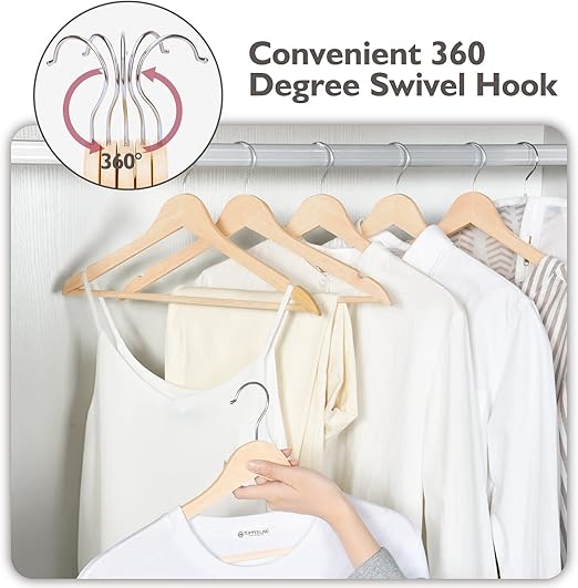 Wooden Hangers 20 Pack, Non-Slip Wood Hangers with 360° Swivel Hook & Notches, Slim Coat Hangers for Shirt, Suit, Jacket, Dress, Natural