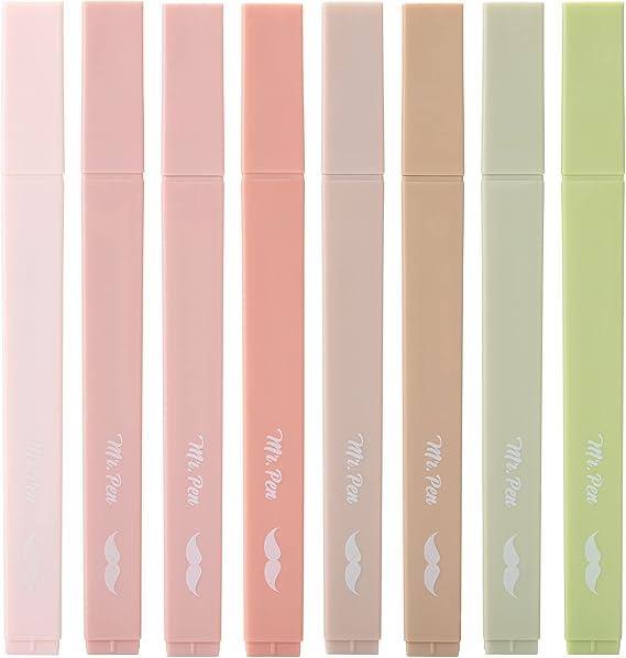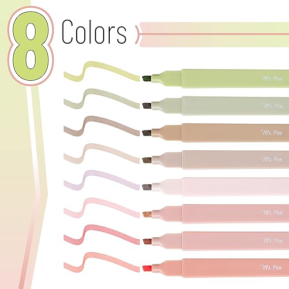Mr. Pen- Aesthetic Highlighters, 8 pcs, Chisel Tip, Boho Colors, No Bleed Bible Highlighter Pastel, Assorted Colors, Cute
