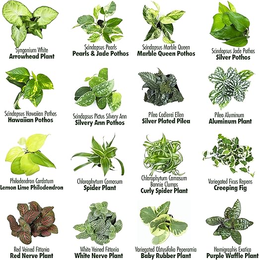 - LIVE HOUSEPLANTS: A growers choice 6-pack plant collection featuring these easy plants: a live Fittonia plant, a live Pothos plant, a Dieffenbachia plant, an Aralia plant, and other green plants.