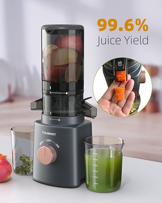 Juicer Machines, TUUMIIST Cold Press Juicer with 4.25” Large Feed Chute Fit Whole Vegetable And Fruit, Masticating Juicer Easy To Clean, Gun Grey