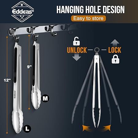 - STRUDY FOOD-GRADE STAINLESS STEEL – EDDEAS kitchen tongs are made of 1mm thick food-grade stainless steel in one piece for enhanced robustness and heat resistance, rust resistance and easy handling. The overall light weight and ergonomic features are maintained.