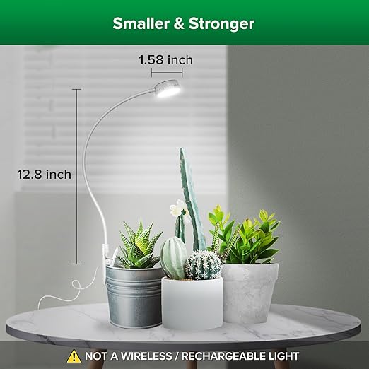 - SMALLER & STRONGER: SANSI LED pot clip plant light equipped with SANSI unique ceramic technology, provides more efficient power conversion. The indoor plant light provides 5W output power with 35.78 μmol/s/㎡ @6 inches growing power. Compared with the similar 10W plant light, the output power is saved by 50% and the plant growing effect increased by 25%. The LED grow light is suitable for various indoor potted plants, such as succulents, aloe vera, devil’s Ivy, calibrachoa, African violet, etc.