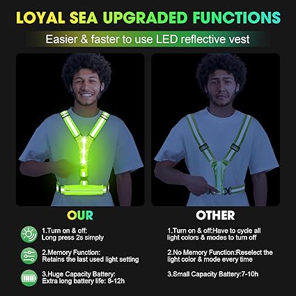 - Ensure Safety & Warn Vehicles: Reflective vest with high brightness LED and super bright reflective silver strips are 10 times more reflective than ordinary reflective accessories. LED lights on the front and back of the running lights for runners enable you to be easily seen 360° at night. Even in low light or other unfavorable conditions, at distances of up to 1,000 feet, it can alert oncoming traffic that someone is here, ensuring your safety