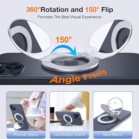 - [Graceful Design for Versatility] – “Your Essential Cell Phone Accessories for Style and Convenience” – TORRAS MagSafe Phone Grip Holder is crafted with both functionality and elegance in mind, perfectly compatible with your iPhone 16 15 14 13 12 Pro Max series with a MagSafe case. Its sleek design allows you to effortlessly secure your phone, doubling as a convenient makeup mirror for your daily routine.