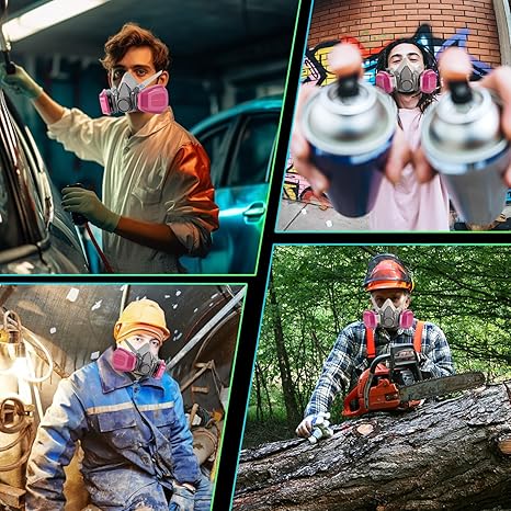 - HIGH EFFICIENCY FILTRATION – Dual filtration system consisting of filter cotton and activated carbon, with a filtration efficiency of up to 99.97%. The respirator mask helps against certain organic vapors, non-oil and oil particulates, smoke, dust, etc.