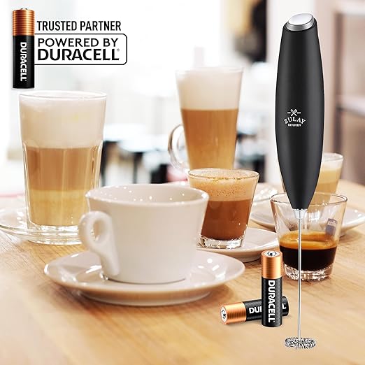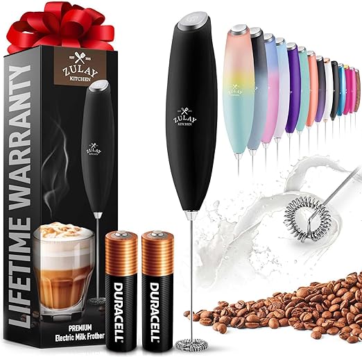 Zulay Kitchen Duracell Powered Milk Frother Wand Drink Mixer – Durable, Proprietary Z Motor Max – Handheld Frother Electric Whisk, Milk Foamer, Mini Blender and Electric Mixer Coffee Frother – Black