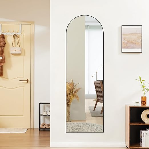 Sweetcrispy 59″x16″ Arched FFull Length Mirror, Standing or Leaning Full Body Mirror with Aluminum Alloy Thin Frame, Suitable for Bedroom or Cloakroom,Black