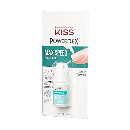 KISS PowerFlex Maximum Speed Nail Glue – Fast Drying Adhesive for Glue-On Nails & Repairs with Nozzle Tip Applicator, Ideal for Tips & Wraps, Net Wt. 0.10 oz (3g)
