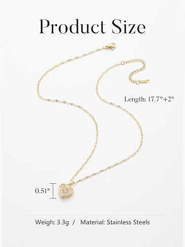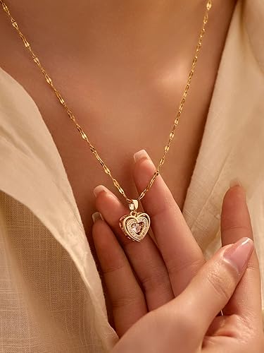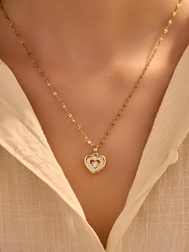 1 PC Gold Heart Pendant Necklace with Gemstones, Gold Plated Stainless Steel Chain Cubic Zirconia Inlaid Necklace