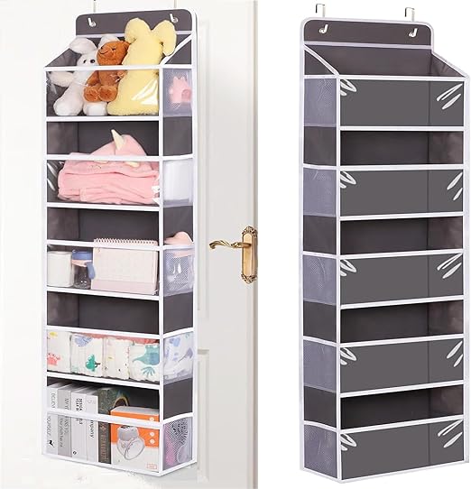 - 【Keep Shape Well】Over the door storage is made of thicken non-woven fabric, strongly reinforced bottom cardboard and sides fiberglass strips can keep the shape more effectively and increase the carrying storage capacity, the hook is made of metal thin and tough won’t affect the door’s movement.