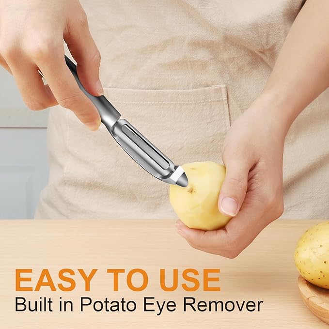 - Upgrade Quality Material: Use upgraded rust free carbon steel blade and zinc alloy body makes it rust-free. The blade is hard which better than ordinary stainless steel. Quickly removes tough skinned fruits and vegetables.