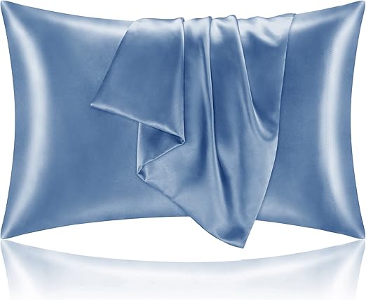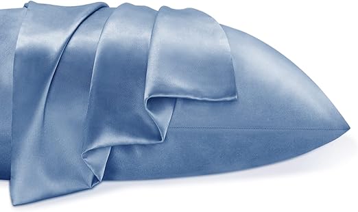 BEDELITE Satin Pillowcase for Hair and Skin, Super Soft and Cooling Similar to Silk Pillow Cases 2 Pack with Envelope Closure, Gift for Women Men(20″x26″ Standard Size, Airy Blue)