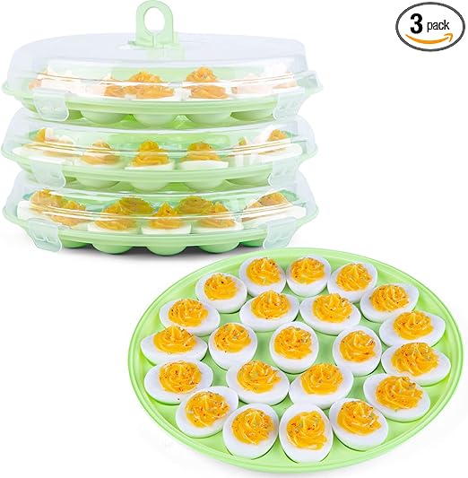 HANSGO 3PCS Deviled Egg Platter and Carrier With Lid – 66 Egg Slots for Parties and Home Kitchen