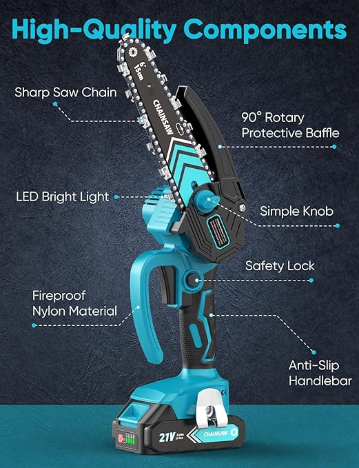 - Highly Efficient & Fast & Precise Cutting: High-hardness alloy steel blades and chains, processed through quenching, combine with an upgraded coating to significantly enhance the sharpness and abrasion resistance of our chainsaw. It effectively handles branch-cutting tasks at a high speed. With a 90% improvement in working efficiency, this electric chainsaw saves you time and effort, making it pretty user-friendly.