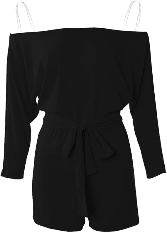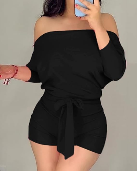 Women Batwing Sleeve Off Shoulder Tied Detail Romper Stretchy Fabric Summer Casual Beach Vacation Chic Day to Night Outfit