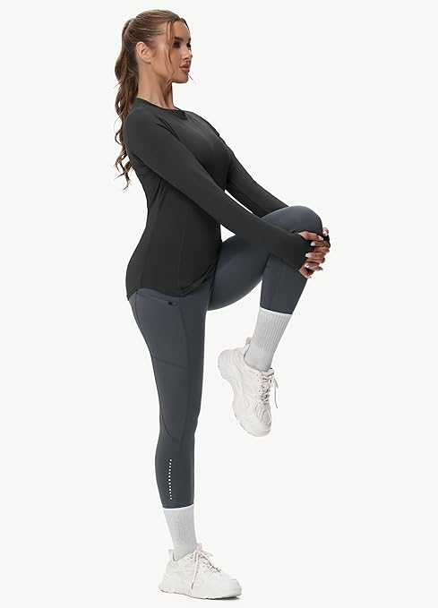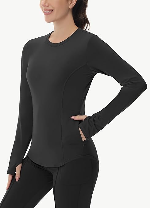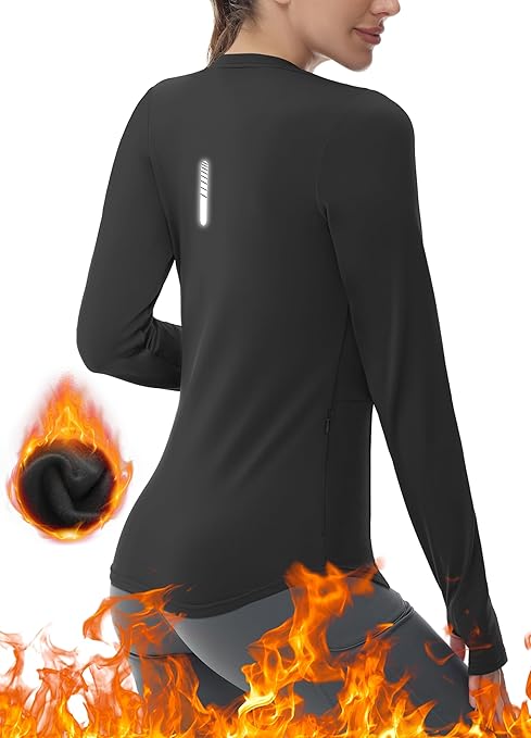 Thermal Shirts for Women Winter Running – Fleece Lined Long Sleeve Warm Tops Cold Weather Gear Thumbholes Zipper Pocket