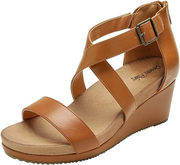 DREAM PAIRS Women’s Open Toe Buckle Ankle Strap Summer Platform Wedge Sandals