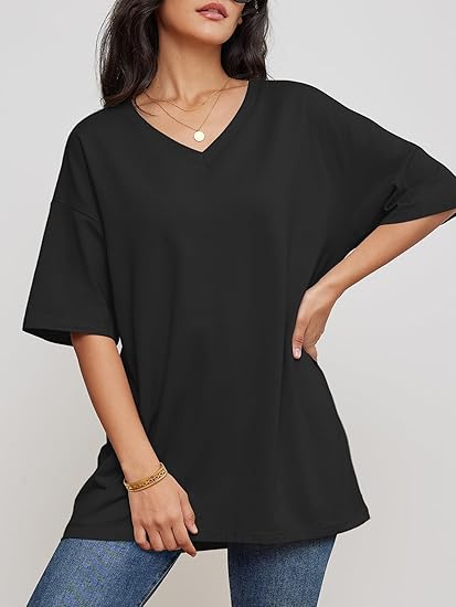ATHMILE Womens Summer Oversized Shirts V Neck Business Casual Workout Tops Beach Vacation 2025 Gym Clothes