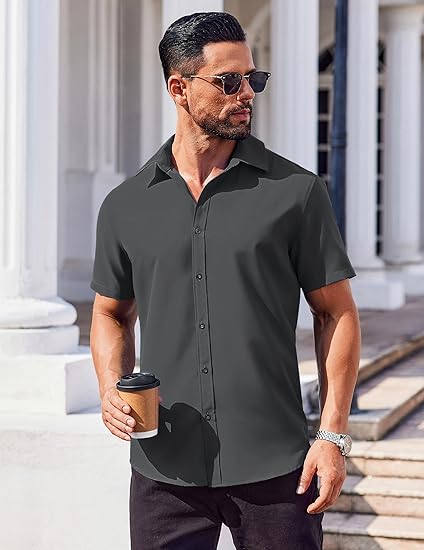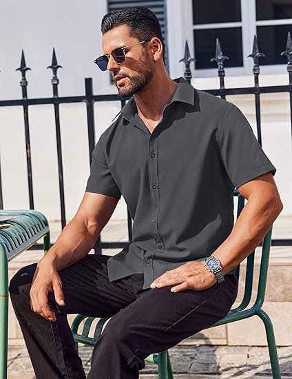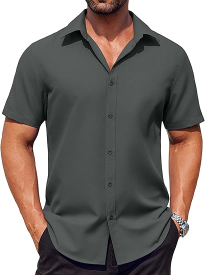 - Stylish Design: Mens Casual Dress Shirt features spread collar, short sleeves, button closure and exquisite tailoring for a classic and polished appearance