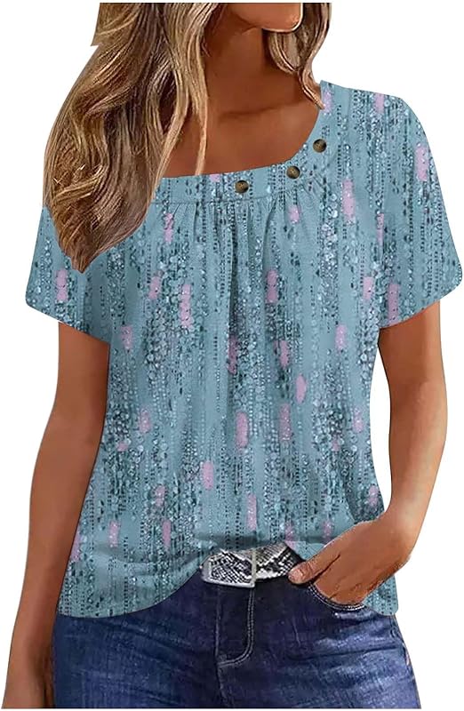 Womens Summer Tops Dressy Trendy Boho Floral Print Short Sleeve T Shirts Casual Loose Fit Basic Tunic Blouses Tees