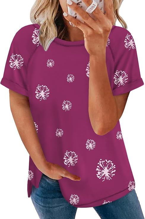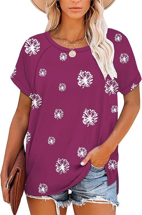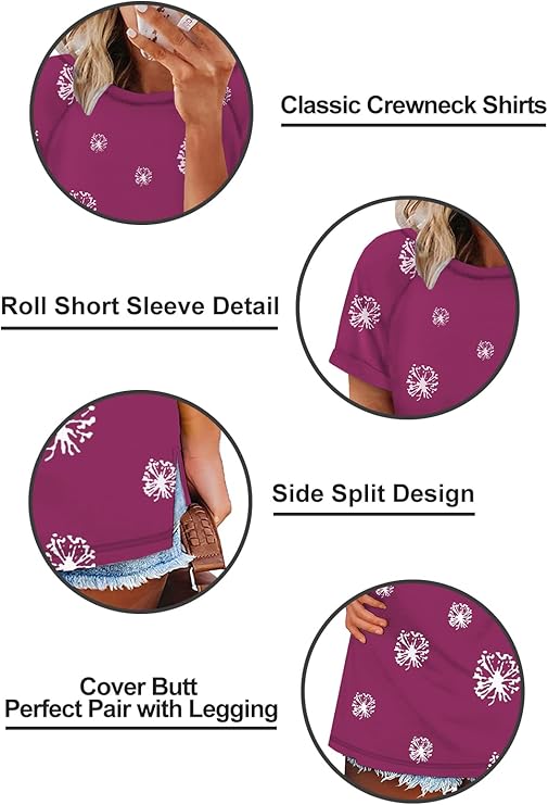 FERYSHE Womens Summer Tops Casual Short Sleeve Tee Side Split T Shirts
