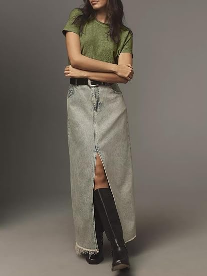 Tankaneo Womens Short Sleeve Tops Cropped Crew Neck Tshirts Casual Summer Cotton Boxy Tee Shirts Army Green