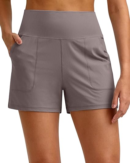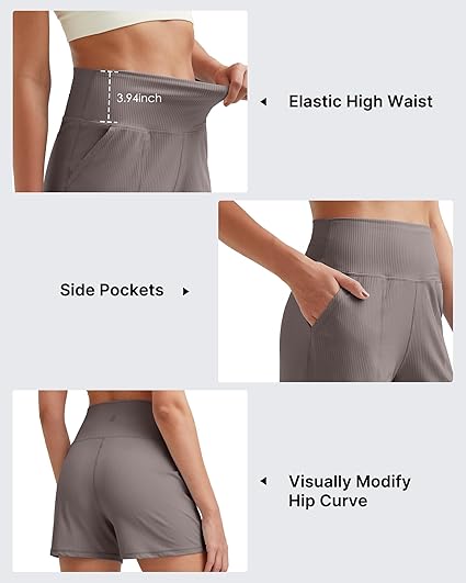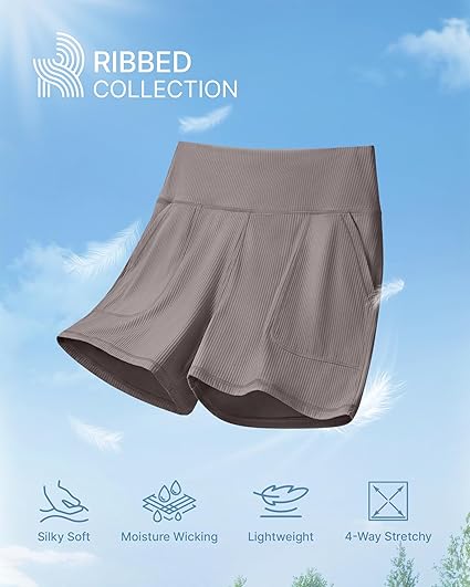 G4Free Ribbed Casual Shorts for Women High Waisted Trendy Running Athletic Summer Shorts with Pockets