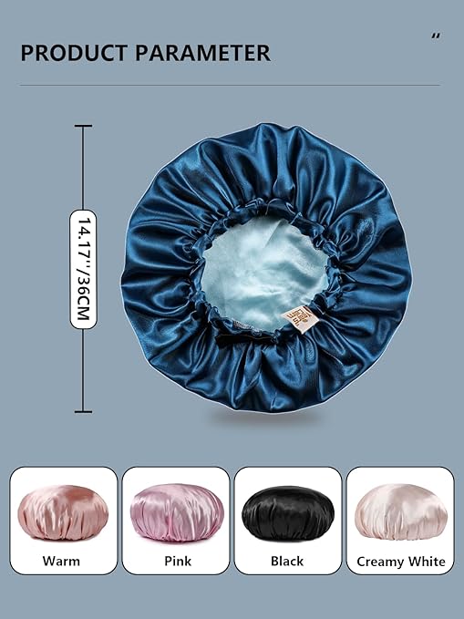 Years calm Silk Bonnet for Sleeping Women, Double Layer Soft Ajustable Elasticity Band Satin Bonnet for Sleeping Hair – Sleep Shower Caps (Blue, One Size