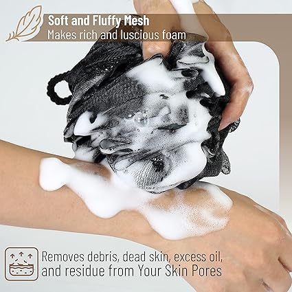 - Charcoal-Infused Excellence: Crafted from high-quality fiber infused with activated charcoal, the bath loofah not only exfoliates but also aids in drawing out impurities from the skin, offering a detoxifying cleanse every time you bathe.