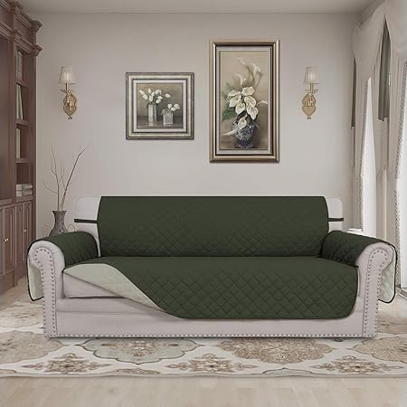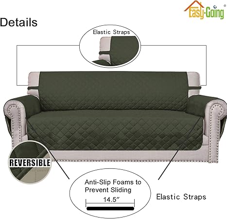 Easy-Going Reversible Couch Cover for 3 Cushion Couch Sofa Cover for Dogs Water Resistant Furniture Protector Cover with Foam Sticks Elastic Straps for Pet Cat (Sofa, Army Green/Beige)