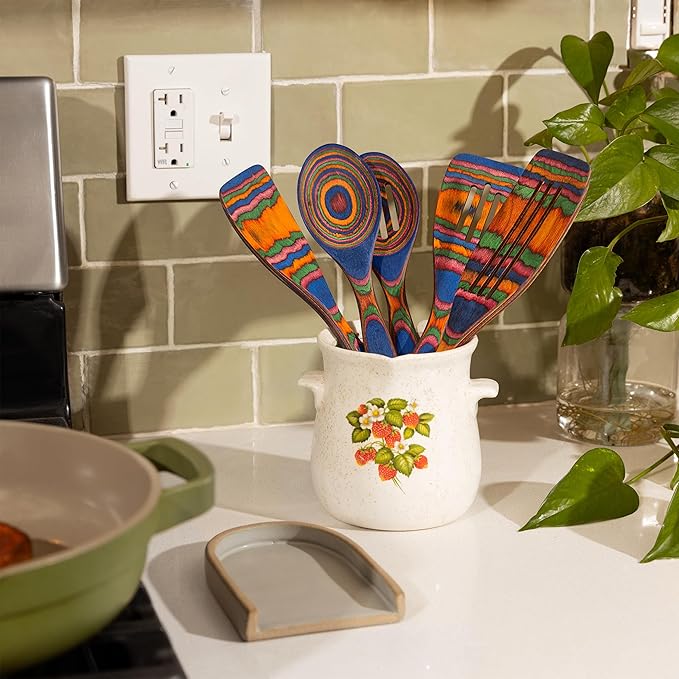 • Durable Utensil Set – This 5-piece pakkawood wooden kitchen utensil set includes colorful 12-inch tools designed for durability. Perfect for mixing, flipping, and serving, these cooking utensils set wooden bring functionality and style to your kitchen.