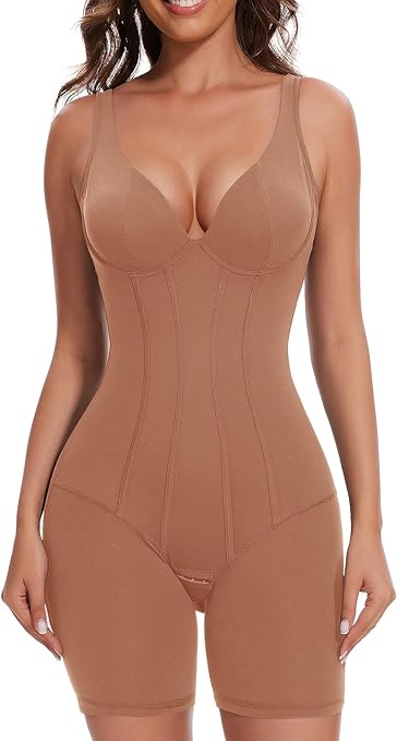 Slimers Women V-Neck Corset Bodysuits – Tummy Control Sculpting Body Suits : Butt Lifter Shapewear Outfits Club Tops